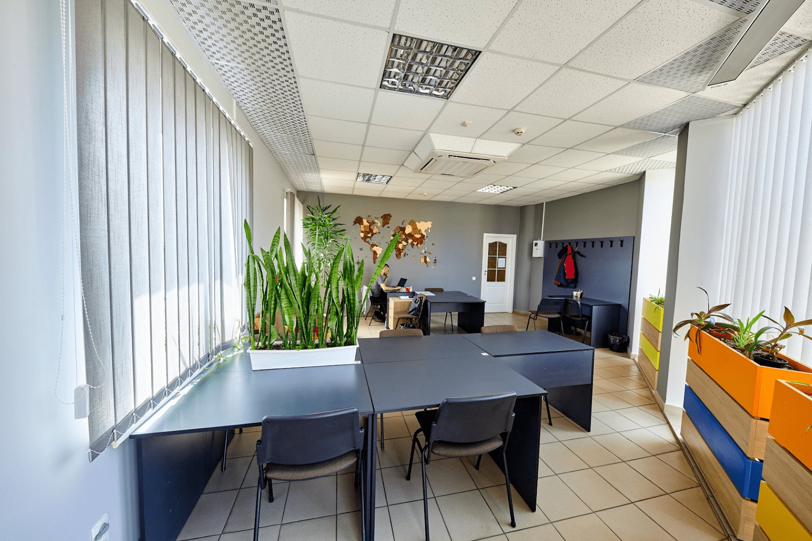 Это коворкинг и обучающий хаб в одной локации. Здесь можно работать как большой командой, так индивидуально, а также устраивать разного рода события, курсы, встречи. Помещение снабжено генератором, в случае отключения электроснабжения или перебоев, старлинком.