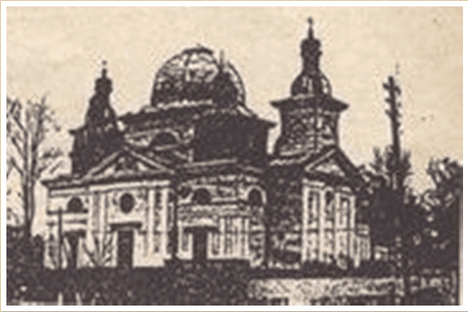 Пожар 1832 г. уничтожил в городе много домов, а также деревянную церковь. Поэтому в 1836 г. городская община отстроила новую церковь, на этот раз каменную, или как тогда называли каменную византийского стиля. Имела три византийских купола из тесаного камня: внизу четырехугольная, вверху восьмигранная и завершалась куполом. Колокольня была построена уже в 1877 г. в романском стиле. У дверей церкви стояли три статуи: Петра, Иисуса Христа и Павла. Колокольня имела колокол весом 20 тонн.
