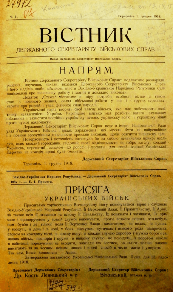 В Тернополе выходило сразу несколько изданий: “Стрелец”, “Вестник Государственного Секретариата военных дел” и т.д. Информировал местное население и военных в ситуации на поле боя Государственный Секретариат Военных дел ЗУНР. Его члены с 24 ноября и по 31 декабря 1918 года находились в городе Тернополь, откуда осуществляли управление республикой. Роль осведомителя взяла на себя также военная канцелярия. Однако коммуникационная система находилась в несколько сложном положении. Ситуация на фронте очень быстро менялась. Встал вопрос о техническом обеспечении войск телефонными и телеграфными станциями, радиостанциями, которые обеспечивали бы постоянную и быструю связь с военными командирами и другими воинами.