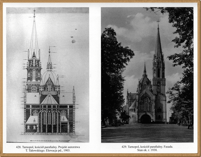 Как сообщает издание barwyszkla.pl, неоготический костел Матери Божьей Неустанной Помощи в Тернополе был построен в 1903-1908 годах по проекту архитектора Теодора Теофила Таловского. Одним из этих проектов был костел св. Елизаветы во Львове. Стильно и многими элементами своей конструкции тернопольский костёл был двойником Львова.
