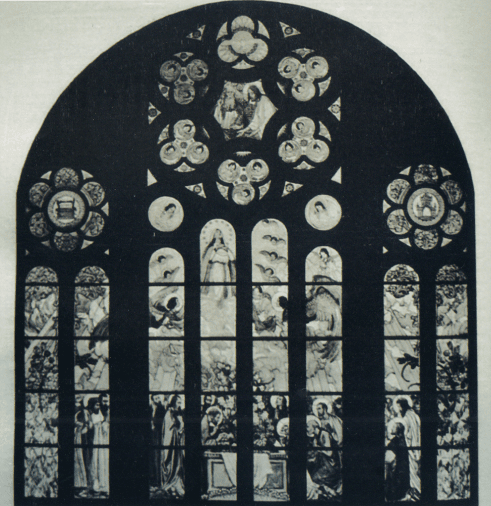 В 1913 году большие окна трансепта были украшены витражами. Для оформления картонных коробок приход искал известных художников. Темой витражей должны быть сцены из жизни Пресвятой Богородицы, а именно Успения Пресвятой Богородицы и Введение Пресвятой Богородицы в храм.