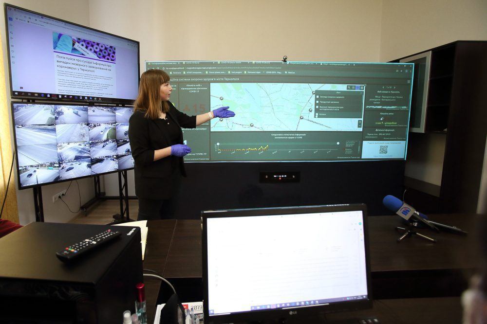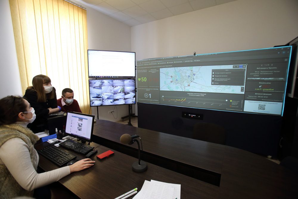 Во время презентации демонстрируют изображения с видеокамер. Заметно все, что происходит на сорока локациях. Приборы нужны ради того, чтобы знать что происходит в каждом уголке города. За этим следят представители правоохранительных органов. Диспетчерский пункт находится в микрорайоне «Канада», однако контролируют весь Тернополь. Всего установлено 735 камер на улицах, возле жилых домов. Подчеркивают, больше внимания уделяют въездам и выездам из города, перекресткам, местам в парках и там, где бывает обычно много людей. Также следят за аварийно-опасными участками дорог. В учреждениях дошкольного образования работает 114 камер, 15 — медучреждениях Тернополя, 118 — у многоэтажек. Говорят, что результаты уже есть, потому что полиция сразу фиксирует нарушение общественного порядка, правила безопасности дорожного движения. Систему планируют расширять ежегодно, добавлять новые видеоприборы. Также хотят ввести круглосуточную работу центра. Сергей Надал добавляет, что установят датчики с реакцией на пожары и затопления, ведь явления могут возникать разные. Все ради того, чтобы горожане чувствовали себя в безопасности. Среди возможностей диспетчерского пункта — постепенное наращивание системы отображения.