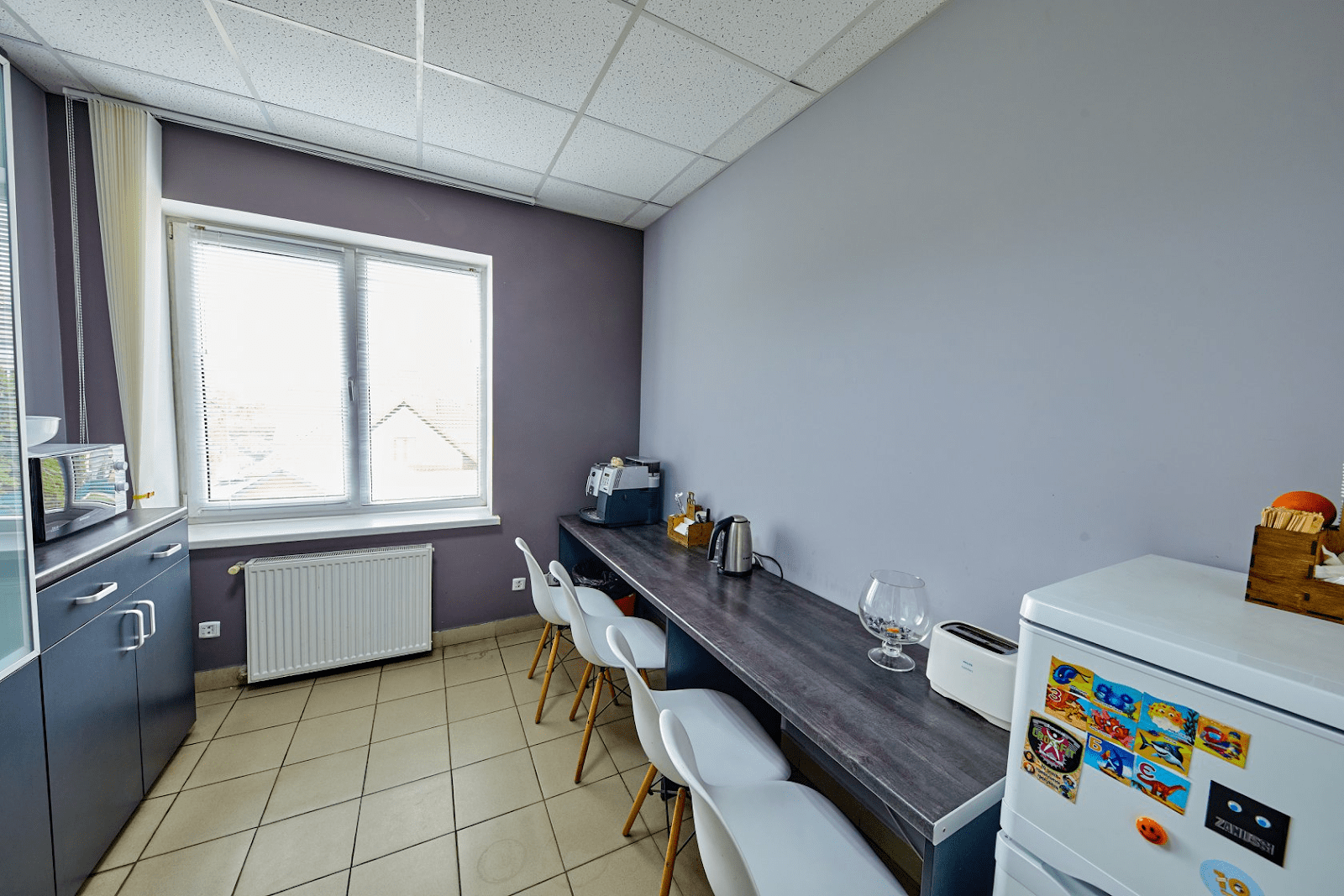 Окремі зони – кухня з кавою, чаєм та печивом, зона для відпочинку з мягким диванчиком. Це креативний і творчий простір, де не тільки дорослі, але й діти можуть опанувати сферу інформаційних технологій.