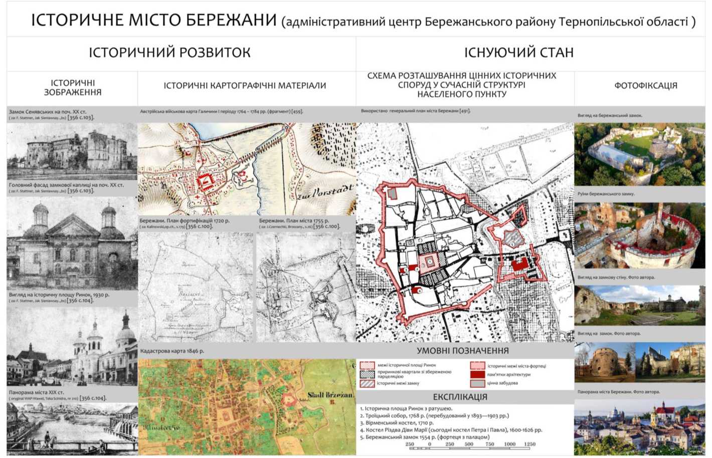 Отже, для міста Бережан у період їх найвищого розвитку характерною була урбаністична модель міста-резиденції XVII – XVIII ст., головним розпланувальним принципом якої є розташування середмістя, композиційно поєднаного із замком.