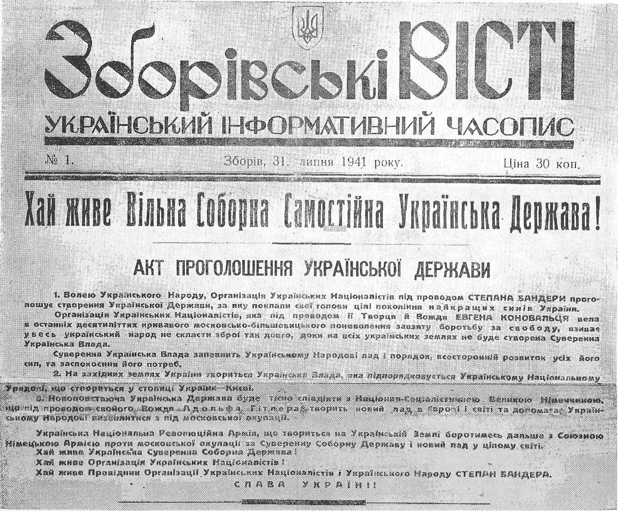 Будь-які прояви державності та української приналежності у періодиці одразу ж викорінювалися. Так, наприклад, газета “Тризуб” зазнала тиску з боку фашистів. У результаті – припинила свою діяльність.