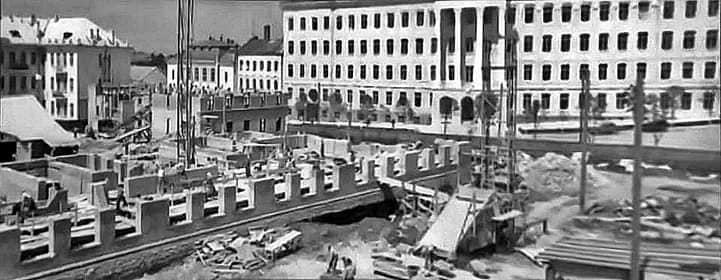 Будівництво майбутнього ХБКа… тепер “Текстерно”, центральний корпус, фасад. Приблизно 1967 рік. Фото із сторінки Віктора Мадрі