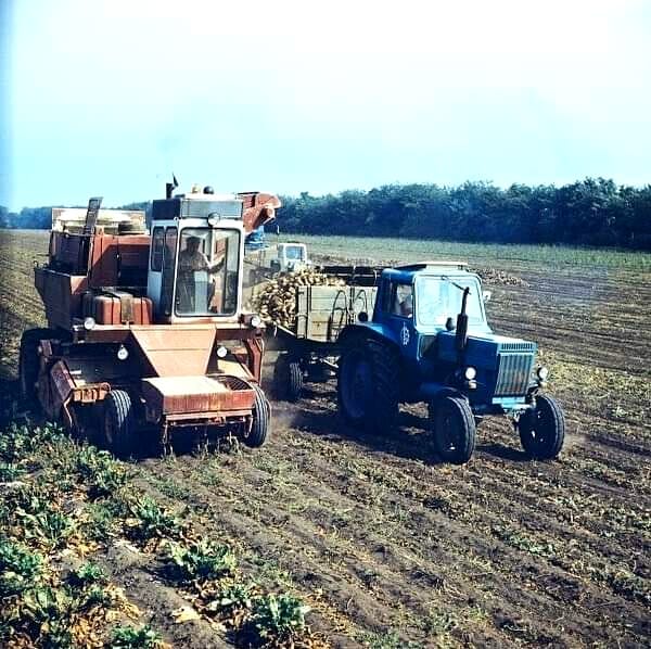 Продукція комбайнового заводу. Бурякозбиральний комбайн КС-6 та трактор МТЗ-80. Фото із сторінки Віктора Мадрі